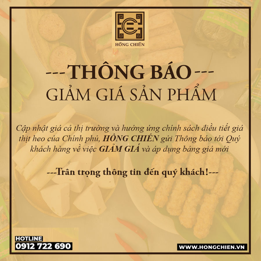 Cập nhật giá cả thị trường và hưởng ứng chính sách điều tiết giá thịt heo của Chính phủ, nhà hàng Hồng Chiến gửi Thông báo tới Quý khách hàng về việc GIẢM GIÁ CÁC SẢN PHẨM và áp dụng bảng giá mới.